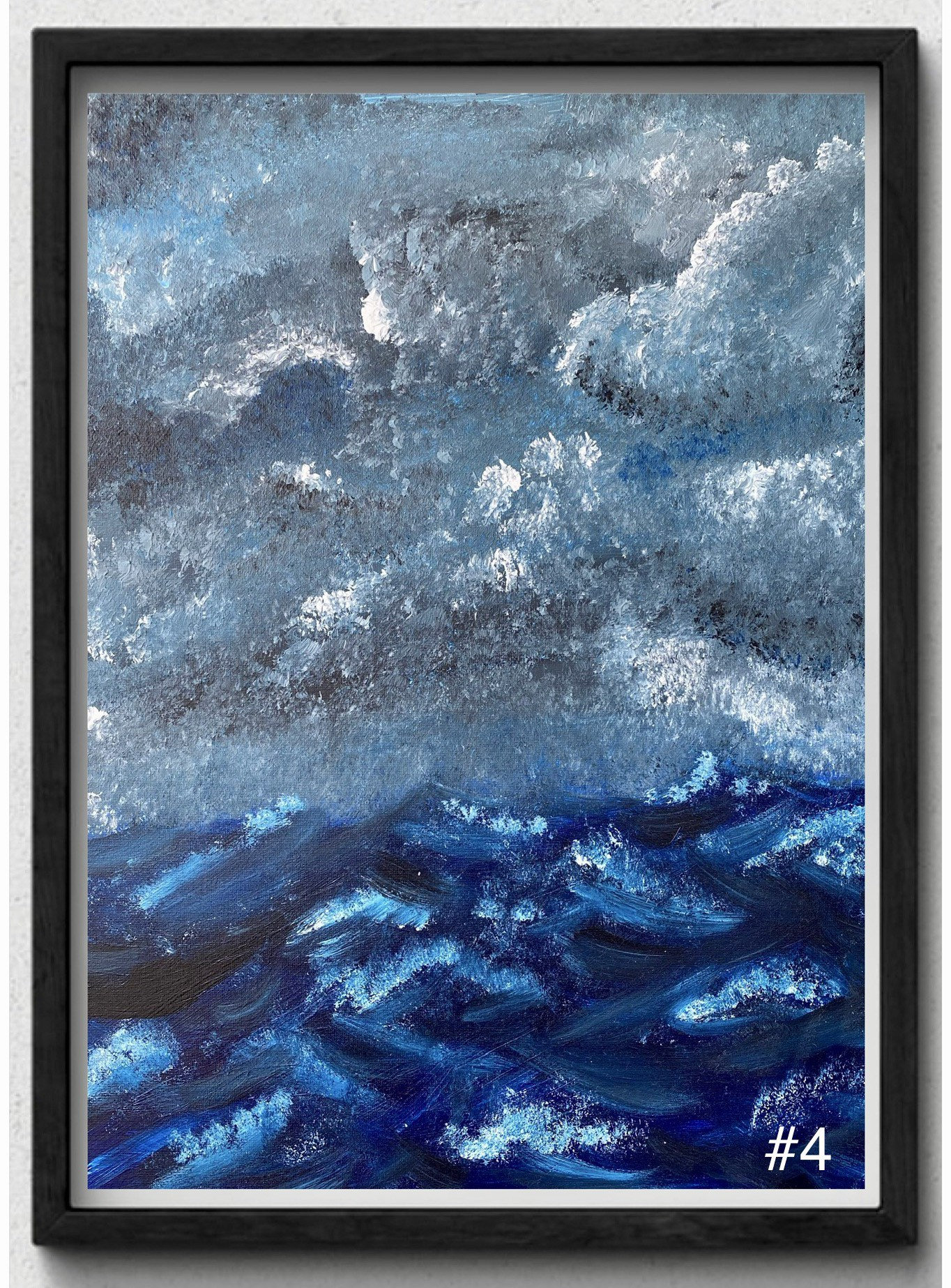 Titled: Turbulence - Transitional Series (set of 4) | Stormy Weather Original Art | Hurricane at Sea Painting | Ocean Waves Print | Transition Series